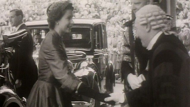 A month after her coronation Queen Elizabeth and Prince Philip visit NI in July 1953. This clip shows the royal couple in Belfast their progress by train along the north coast.