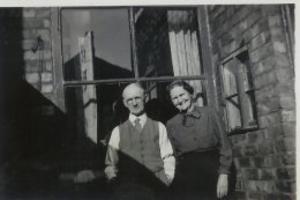 My Grand Mother Maria Elizabeth and Grand Father Thomas William Tighe. Mother's parents. They are in the yard of the house we were all in when War was declared. "Godstone House" Moses Street North Ormesby and what a day that was. Photo Taken 1942.