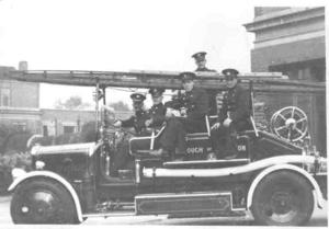 Sure enough war was declared and the retained firemen became fulltime. My grandfather became fulltime in 1937/38, and received nearly £4 per week, a good wage then. Gilbert helped train recruits for the Auxiliary Fire Service. He was a trained motor fitter and served at the Brigade workshop at the Cattle Market at Kingston. He was also stationed at Godalming in Surrey and Norwich in Norfolk. He returned to Surbiton Fire Station on normal duties in 1945. He and his brothers-in-law were not asked to do military service.
