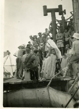 Some of the crew from HMS Wager enjoying themselves during the crossing the line ceremony. My father, David H Savin, was a torpedo man aboard wager, and we recently found a stash of old photos. A few, like this one, he had put a caption on the reverse, dating it exactly.