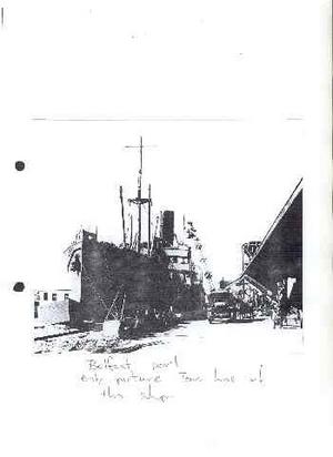 Coal was coming from Glasgow. We were at Glasgow and we had to load up there. It wasn't very difficult, because they just brought the trucks came alongside and lifted them by crane, and took a truckload at a time, was put into the hold of the ship. It didn't take them very long, in fact it took us longer cleaning it down when it was being discharged. We didn't worry too much about that, because it meant an extra few days in port.