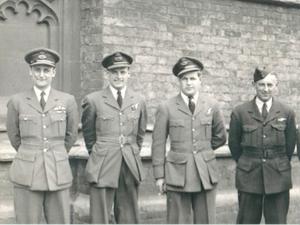 In this photo are 3 of Skipper W/Cmdr. Ted Porter’s Crew. Left to right: W/Cmdr.E. Porter. DFC & Bar., F/O.Jim Logan RCAF DFC.Navigator. F/O. Bill Pearson. RCAF DFC Bomb Aimer and P/O.Sonny Thoms RAAF Rear Gunner. DFC