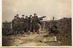 The tanks of the Guards Armoured were sitting ducks to the anti tank guns of the Germans. Some tried to escape by going down the banking, but even so, they sank down and became immobile. We were then brought in to pinpoint these guns with coloured smoke flares at the time that the Typhoon fighters peeled off and let their rockets go. This had the desired effect and we made slow progress. Then Jerry counter attacked and cut us off for two days, so we lived on lousy German rations of black bread and coffee made from acorns. It was hard work getting the guns into action, all of them had to be manhandled in the clinging squelchy soil. Normally we could drop into action and be ready for firing in a few minutes; here it was taking two or three hours. We finally made Nijmegen, only to use our guns to cover retreat of the few members of the Airborne, who made it back to this side of the Rhine so near and yet so far.