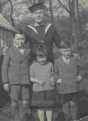 Ordinary Seaman Dawkins with Brothers Norman and Cecil, Sister Valerie, Christmas 1940