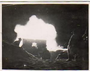 As gunner (I was now back in Sergeant Robson’s gun team), we dug gun pits, slit trenches and unloaded tonnes of ammunition all day and all night. Bleary eyed we opened up with a huge barrage of 400 rounds per gun, ears were ringing, eyes dazzled by the flashes and fingers burnt as we flung the empty, but still hot, brass cartridge cases out of the pit. Three battalions of D.L.I went at the first assault and casualties were heavy. Not much came back our way, but with so many calls for gunfire, it was obvious that things were not going too well.