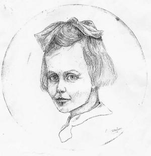 I was born in 1936 and lived in Macclesfield where many evacuees from London were sent. My aunt, Sarah Barton, had a teenager evacuee called Oliver Harrison and one day when I was in her house and talking to Oliver, without me knowing, he sketched my head and shoulders. I would be about 7 or 8 at the time. My aunt kept the sketch on her wall until her death in the 50’s and then I had it. To this day I keep this sketch on my bedroom wall, still in its original basic frame.