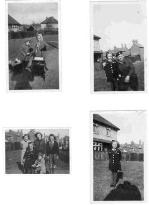 1st image is of Ralph tank driver with myself. February 1944 2nd image is of myself and my brother out to play. 3rd image is of myself showing my patriotic buttons. 4th image is of the whole Broomfield family.