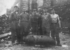There were many different bomb types, for instance, they started coming down by parachute, hanging from trees, and even church spires, and because they weighed over a ton, they were quite a problem to get down. The butterfly bombs were the most dangerous, being so sensitive that they could not be disarmed, and had to be blown up.