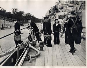 GERMAN NAVAL OFFICERS LEAVING DIDO AFTER NEGOTIATIONS ON BOARD. 1945
