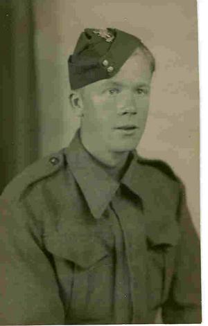 After the Allies landed in Italy, he was recalled into the army and served with the King’s Own Yorkshire Light Infantry when they took part in the Anzio operations. On several occasions, men were hit by random fire, but no one could discover where the shots were coming from until one morning Albert noticed that a haystack had moved over-night and he spoke to the Sergeant about this. On investigation, it was found that a German machine gun nest was concealed in the haystack, which was then destroyed. Later on a mortar shell exploded near him and his comrades thought he was lost, but he came through and walked out through the dust and smoke. Unfortunately, the blast had perforated one eardrum that rendered him deaf in that ear for the rest of his life. He continued to serve with the King’s Own Yorkshire Light Infantry as they progressed through Italy and into Germany.