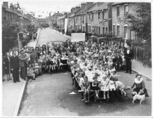 My sister’s husbands both survived the war. One served in the Eighth Army under Monty and was one of the Desert Rats and then went on to the Far East to fight the Japanese. I do not remember where my other brother-in-laws served but they both came home safe and well. When the war was over I remember the celebrations and street parties were organised, as you will see from the photo taken of the very event in the street where I lived throughout the war except for those nine months of my evacuation. The street seemed to have been missed by the many bombs and rocket the Germans had sent over, we were by all accounts very lucky.