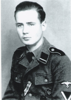 "...the battle of Falaise was a killing field on a grand scale. It was here that I was wounded. It was a lovely day, brilliant sunshine and a good day hunting for the Allied Air force and I had to dispatch to another unit. I had to keep one eye on the road and one eye on the sky. Going pretty fast round a bend towards a road lined by very large trees. There they were. Three American tanks with soldiers sitting on them and the next thing I saw and the next thing I saw was tracer bullets coming towards me. I jumped off my motorcycle and ran through some bushes with bullets whistling all around me. I eventually got away. After running for about twenty minutes I felt short of air and had a pain in my left side. I put my hand inside my coat and tunic and felt blood, it was running down into my boots. A bullet had entered the front of my shoulder and had come out at the back. That was at about 14.00hrs. Six hours later I got back to my unit, was bandaged up and was sent to the field hospital. On the way out of Falaise we were travelling on an open troop carrier and under fire and shelling we turned over into a aditch. Men without legs or arms and other wounds also fell into the ditch screaming and crying for help. Shells landed all around us burning and killing. I eventually got a lift on a lorry and under fire we got out of Falaise and back to Germany to a hospital. I must add that members of the 12th SS "Hitlerjugend" were the best and most courageous soldiers I ever met".