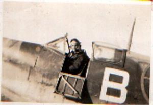 A Pilot sat in the cockpit of a spitfire RAF training school Carberry Canada