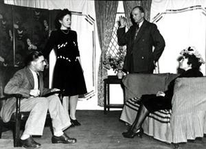 This particular play, 'Behold the Dawn' was staged on top of two trestle tables. We used sheets for a background and sticky paper to make the shape of a window - that was Freddy Millward's idea.