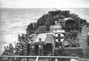 A few months later we found ourselves on an American Landing Ship, Tanks (LST) Medical anchored in Southampton. This vessel, a sort of roll-on roll-off ferry with a lift to the upper deck like an aircraft carrier, was already fully loaded with a miscellaneous collection of vehicles. Deep at the rear of the vehicle hold was our “theatre” tent containing all our main medical equipment.