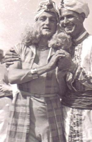 The scene looks as if it is some sort entertainment show, I am not sure who the sailor in the dress but if anyone recognises him I would love to hear from them.