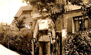 Joseph Wheymark Brain (his brother was Willam John Edward Brain) in a photograph taken while on leave during World War Two, outside his parents’ house in Southmead, Bristol.