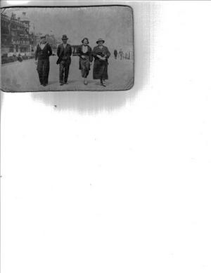 This is a photograph of my parents, Robert and Maud Beesley, together with my sister, Rose and a shipmate of mine that was in the Navy, Walter Brewer. It was taken walking along the front at Weymouth. The date of the photograph is September 1937