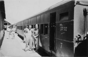 Lewis Goodwin’s last train journey in India. ( Lewis is the one propping the train up )