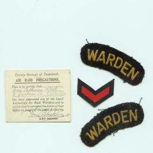 Warden insignia and Air Raid Precaution leaflet.