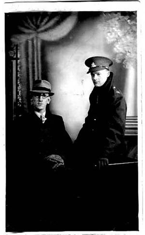 George Lord, at the age of 33,stood and friend seated taken December 21, 1944 at Swift Studio, 13 Sidwell Street, Exeter, England