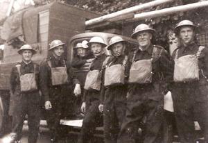 Line up of 'Middlesex Light Rescue Crew' prior to Victory Parade.