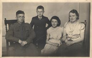 A photo of me with my mum, dad and older sister taken about 1943-44