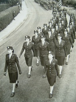 photograph of March Past of Nurses at the USA Military Hospital in Warrington - July 1943. The Nurses had just returned form Iceland.