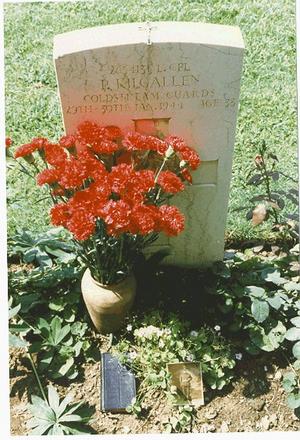 It is my 2004 (60th anniversary) tribute to my dear father. I took his crucifix, prayer book, and studio portrait back to his grave site in the Minturno Commonwealth Military Cemetery between Rome and Naples on the banks of the River Garigliano. The War Graves Commission Register there records his name, age, rank and number, and says that he was the son of Patrick and Mary Anne. It also records that he was the husband of Nora (nee Browne)of Ravenfield, Yorkshire.