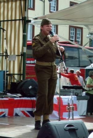 With helping to promote the BBC “People’s War” project at the Festival, unfortunately I was only able to watch and listen to a small part of the ‘Blitz Ball’. However, a ‘Big Band’ recreated the wartime dance music of the Victor Silvester and Glenn Miller Orchestras. There were also tributes to Anne Shelton, Vera Lynn, Gracie Fields and Marlene Dietrich. One artist I did see was a singer / musician by the name of Steve Stephens, who entertained and educated a large enthusiastic crowd by celebrating the songs and music of George Formby, Frank Sinatra, Tommy Dorsey and Artie Shaw.