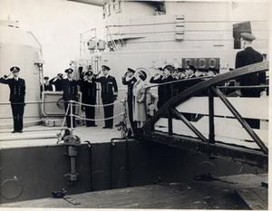 HMS DIDO KING GEORGE VI and QUEEN ELIZABETH WHO TRAVELLED TO RAMSEY ON THE ISLE OF MAN. THEY SHOULD HAVE LANDED AT DOUGLAS BUT COULD NOT BECAUSE OF THE FOG.