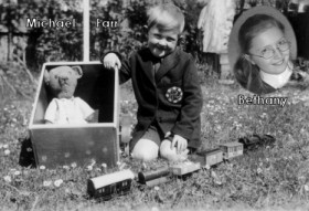 Early in 1945 Michael's auntie invited Michael and his mother (and Michael's teddy bear) to stay with her in Scotland. They went north on the night train, which stayed for 2 hours in Crewe. No lights were allowed on the trains in case an enemy aircraft saw it so it seemed a very long but very exciting journey.