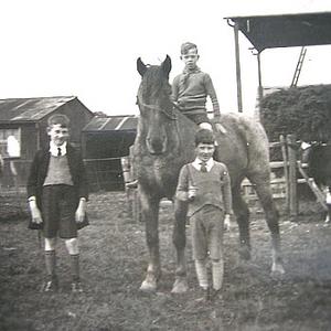 The three evacuee boys from Liverpool. One sitting on a horse.
