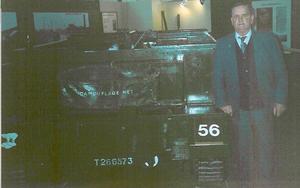 Stan visiting an old friend in 1990 (the bren gun carrier at Durham Light Infantry Museum).