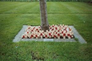 Poppy Crosses placed beneath ‘The Peace Tree’ outside St Nicholas Church, Whitehaven, Cumbria. Some of the so-called ‘D-Day Dodgers’ are buried beneath crosses in ‘Sunny Italy’ that bear no name. Likewise, some of the poppy crosses in the photograph bear no name.