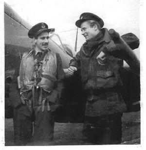 Just after finishing the story A Spitfire Pilot and a Brave Soldier: The Story of a Quest I received a picture of Air Commadore George A Mason DFC, RAF, Ret'd. He is the young man standing on the left. The picture was taken around the time of the crash.
