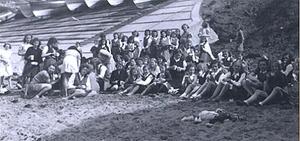 At North Landing, Flamborough, celebrating V.E. Day with a picnic for the boarders of Bridlington Girls' High School.
