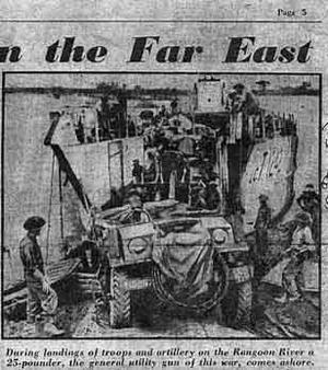 The newspaper cutting shown in the photograph belonged to her father-in-law John Hepworth who served in the Far East in WW2, and show the very landing craft in which he served.