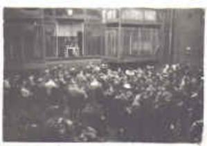 Dads workroom under clock. Lads playing bingo in lift well. HMS Eagle