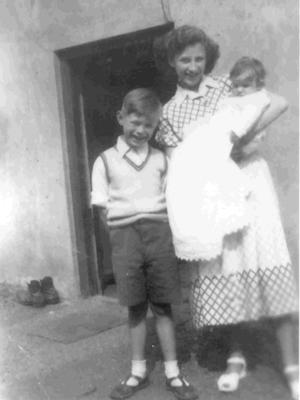 The firm bond that began during the war has continued through the years. Here, in 1950 Patricia returns to visit, for the christening of Pamela Cole, Micheal's baby sister. Michael pictured age 7