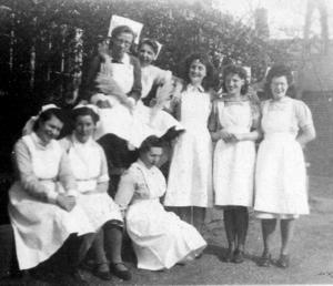 Vera second from right and Nora kneeling in the centre. Maldon Hospital c1943.