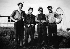 L to R Keith Marsh, Ron Crawley, George Bridgemond & Ernest Stonestreet as Bevin Boys at Hirwaun Hostel South Wales 1945.