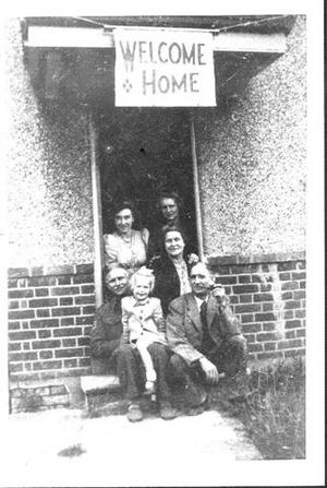 I don't remember my reception, but my sister told me afterwards that they hardly knew me. I had left home a fresh-faced young man, and now I looked (to them), like an old man. I'm sure she was exaggerating. At some point we must have gathered on the front doorstep, where my elder brother took our photo. My younger brother was missing from the group, as he was a sergeant in the Intelligence Corps, and still stationed in Borneo hunting erstwhile fifth columnists.
