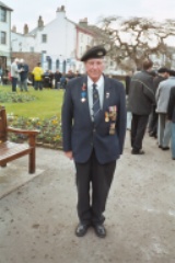 Jack Farrell at the Normandy Veterans Association Memorial Service, St Nicholas' Gardens, Whitehaven, Cumbria, 11 November 2003. Jack took part in the Normandy Landings, serving with the East Riding Yeomanry. Jack landed at Luc-sur-mer, 'Sword Beach' in the afternoon of 6 June 1944.
