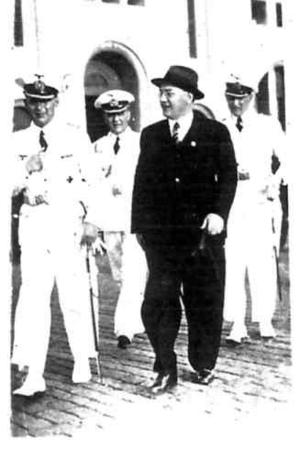 Captain Langsdorff is on the left in the photograph of the German officers. My husband thinks the man in the suit is the German Ambassador. Uraguay was a neutral country and this man spied on the British, reporting British shipping movements back to Germany.