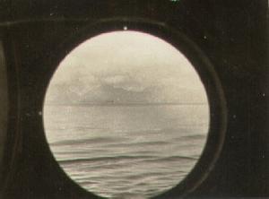 View out of Port Hole from ships Office. (Hawaii in background).