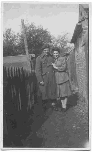 Mary and Kenneth Martin on the morning after their VE Day wedding in Cowley - just before Kenneth sets off back to camp.
