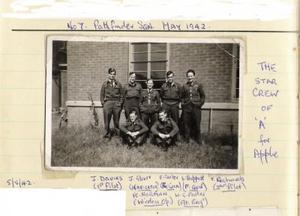 As we neared the English Coast our May Day call had already been picked up and some searchlights near the channel were beckoning us in the direction of one our southern aerodromes by dipping down and pointing out the course to follow. In the meantime, being well overdue we had discussed our chances of getting much further and again thought it might be safer to bale out over the coast, then the pilot and I would ditch the aircraft near the shore. However, attempts to get the crew to abandon the aircraft proved useless so we decided to carry on. We soon arrived over an aerodrome where Wellingtons were doing night flying exercises and, whilst we were circling to land, one of these almost flew straight into us. After a few expletives, Jack decided to make for home and this we did. Arriving over our aerodrome there was no reply to our request to land and no runway lights to welcome us. However, the moon lit up the runway and without any unnecessary positioning, we headed in for landing. Despite the handicap of the damaged engines, Jack put the aircraft down as if nothing was wrong and as the tail went down, the engines cut out for lack of fuel and we slid off the runway onto the grass.