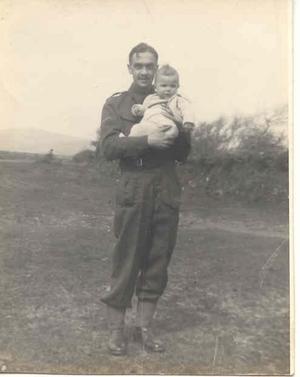 My father, Raymond Bryan,(pictured holding me), was killed at sea on the 8th June 1944 during the D-Day landings. He was by then an Army captain and a member of 17 Advanced Ordnance Depot.
