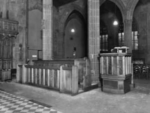 Manchester Cathedral interior in 1945.